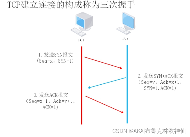 一旦PC1收到PC2的确认,它必须向PC2提供确认,然后连接成功建立