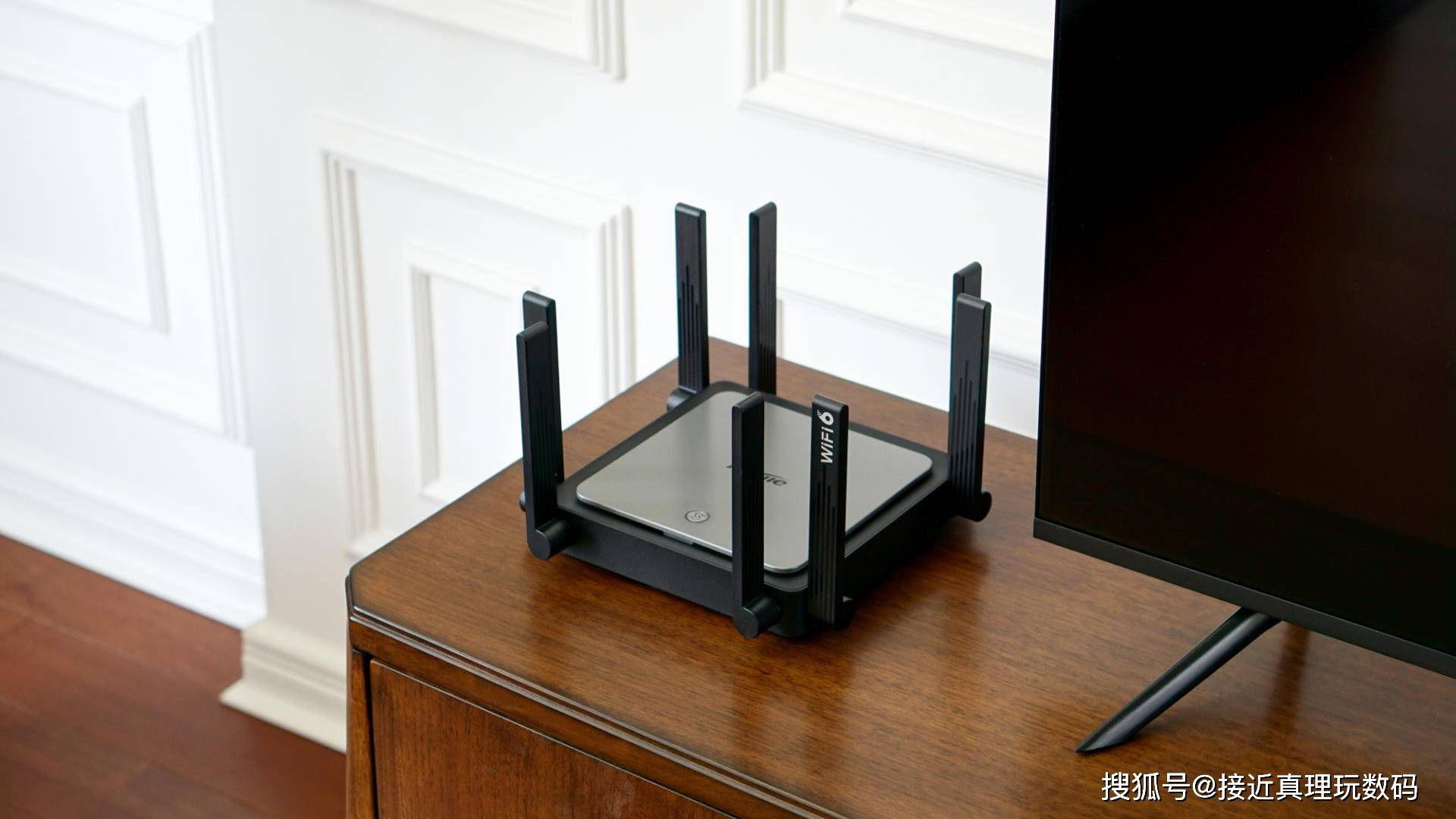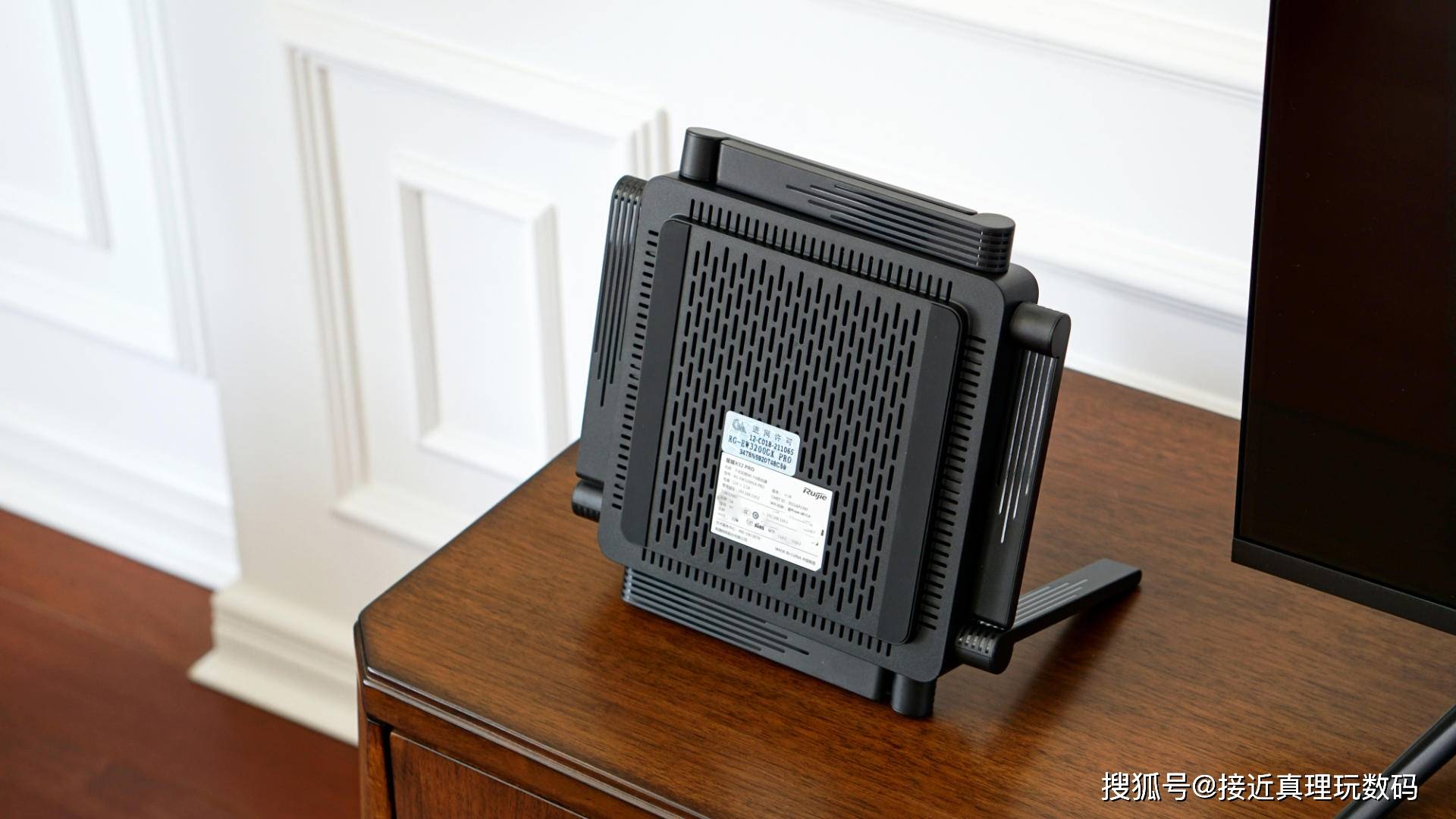八个天线完全膨胀后的状态,天线上的“WiFi 6”这个字很醒来,X32 PRO支持Wi-Fi 6标准。该机的八个天线均匀设计,其中四个是2.4GHz天线,其中四个是5GHz天线,它们都是5dbi高增益天线,无线信号的覆盖率大大增加.