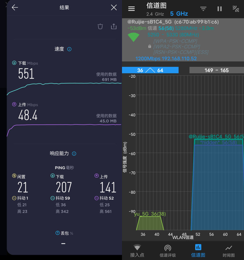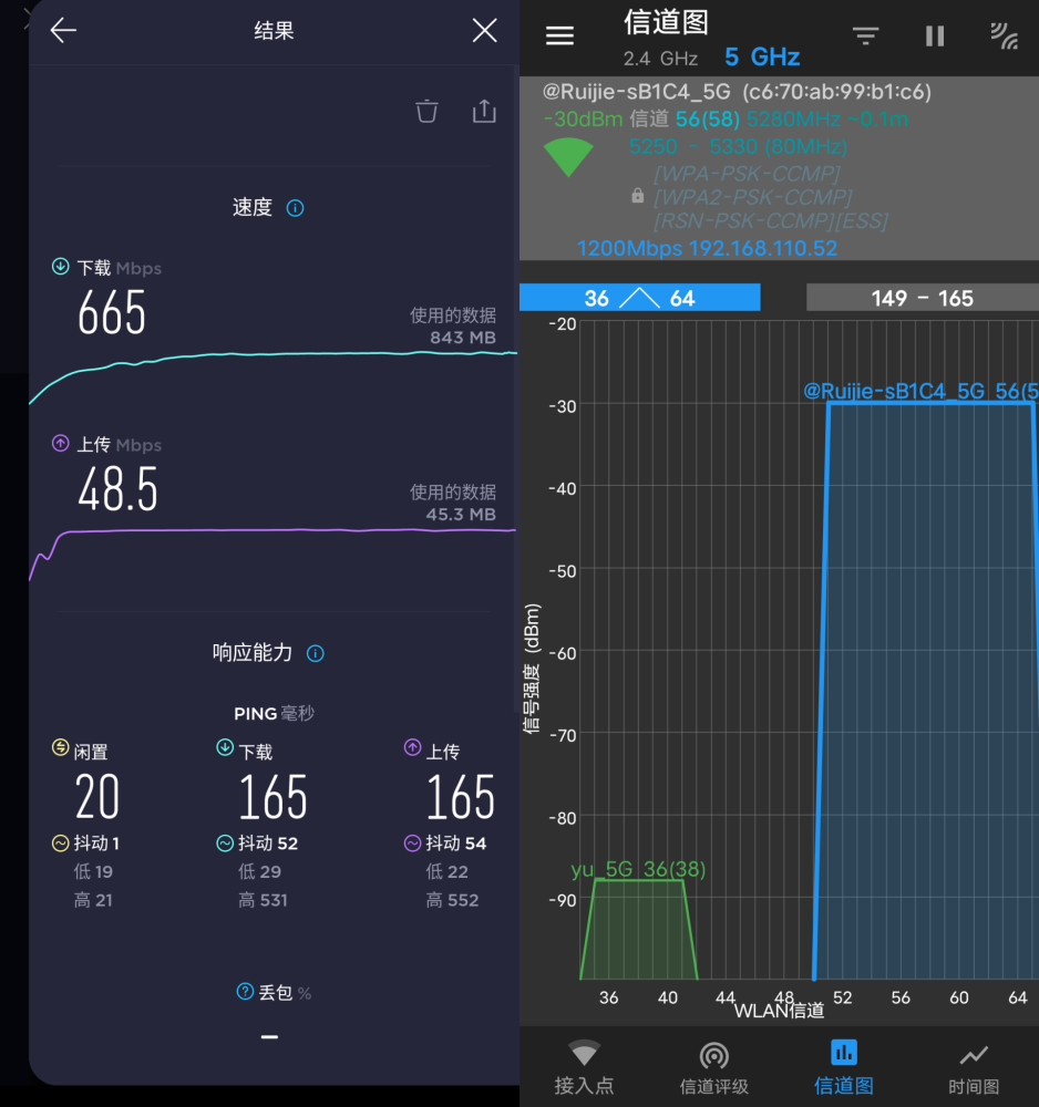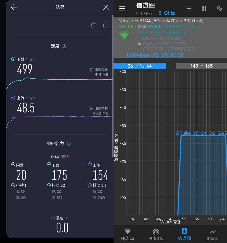 C台和路由器之间有三个壁组合,其中两个是负载壁,信号强度降低到80dBm,下载速度降低到160Mbps,但不会影响正常网络视频观看。