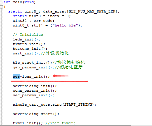 上面的代码是为我们定义一个服务,在这项服务中,我们还定义了两个特征,一种用来阅读收到的数据,一种用于发送接收的数据。当我们接收数据并启动回调功能时,处理我们收到的数据,数据由协议堆的下调 sd_ble_gatts_hvx 函数发送。