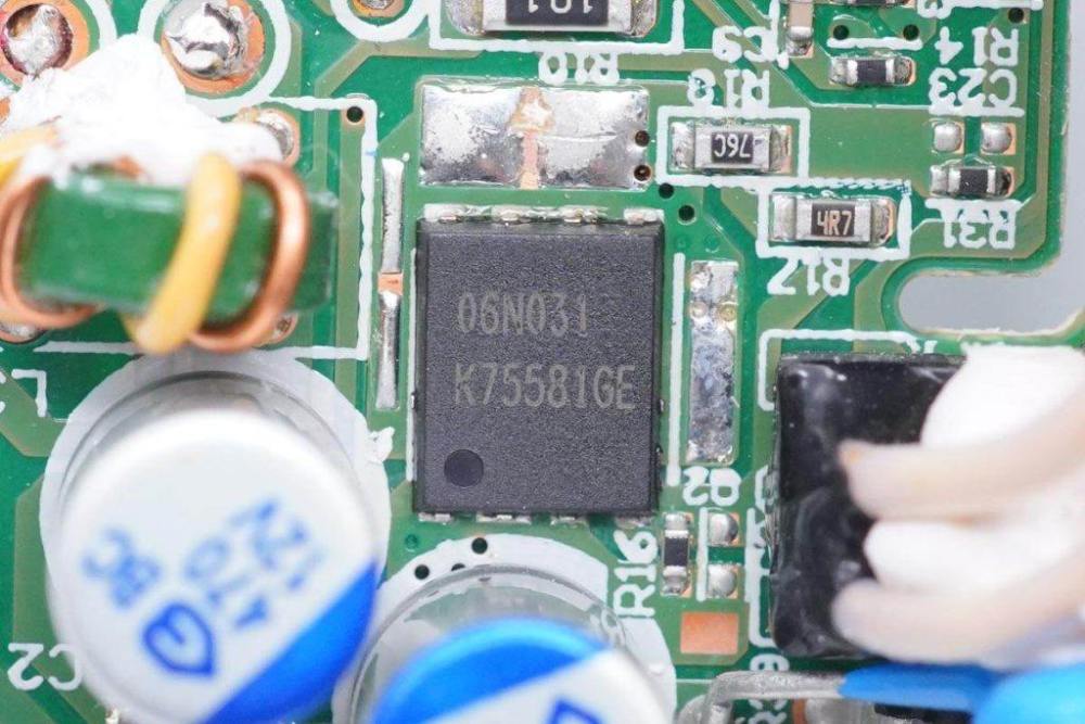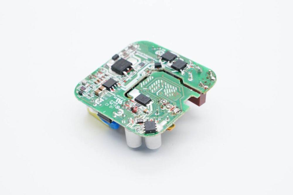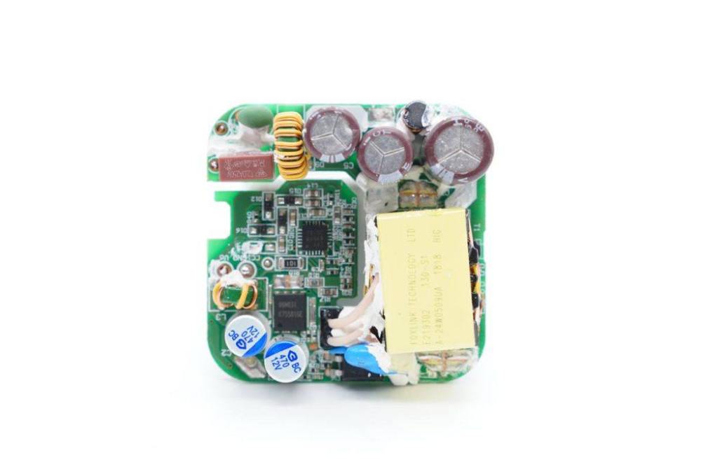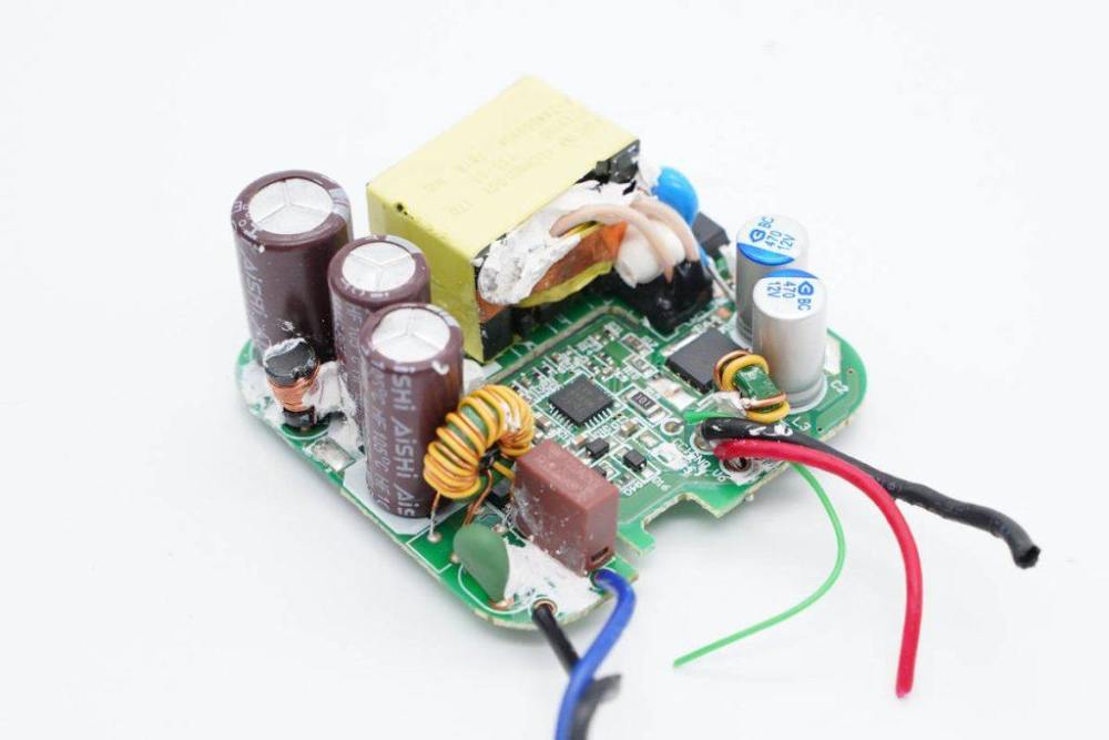 通过观察电容器PCBA模块的逆侧,电容器是一个反应结构,宽压输出,输出电压通过光耦合由协议芯片控制,以满足不同电压的输出要求。