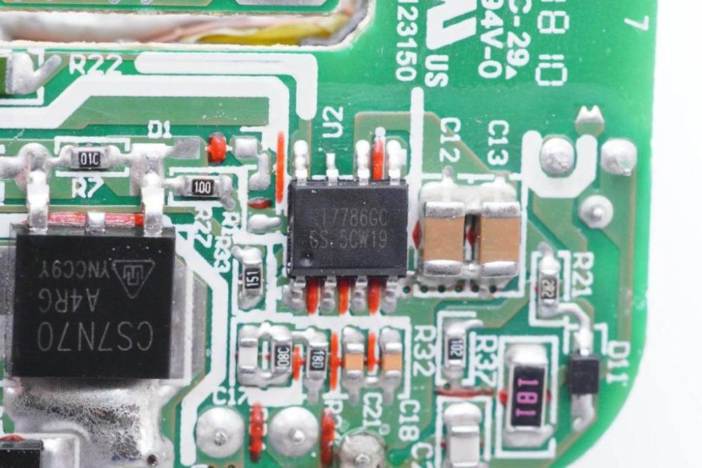 主控芯片来自RICHTEK Technology,Model RT7786,是USBPD快速充电源的主控芯片,独立的功率消耗不足30mW,支持外部热敏感抵抗以保护温度,并具有二次整流器短路保护。