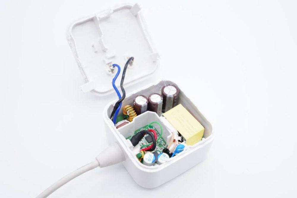 通过对电子24W充电器的外观、尺寸、性能等基本了解,继续详细分解并了解材料的工作。