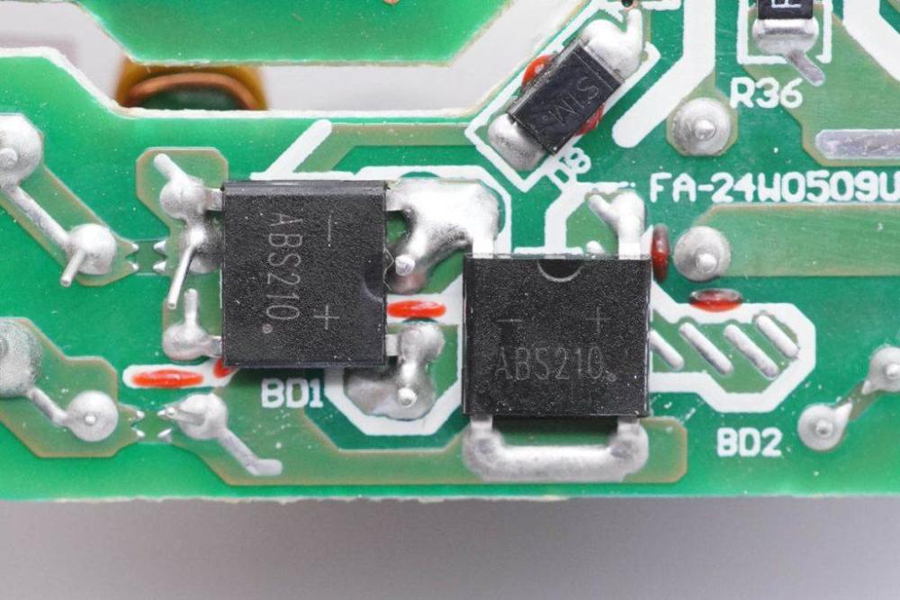 电源输入端使用两个ABS210桥,半桥连接用于热分配。