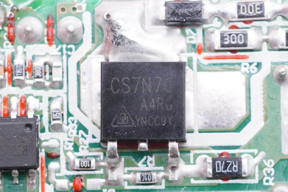 第一类开关管由华卢微型,型号CS7N70A4R-G,电阻700V,电阻0.96Ω,装配TO-252。