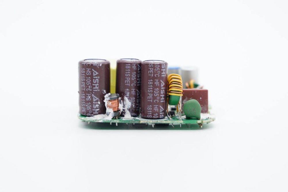 PCBA模块的背部列表,你可以看到,回路板的背部打开罐头,与壳上的绝缘板一起,分离了电源器的初级水平。