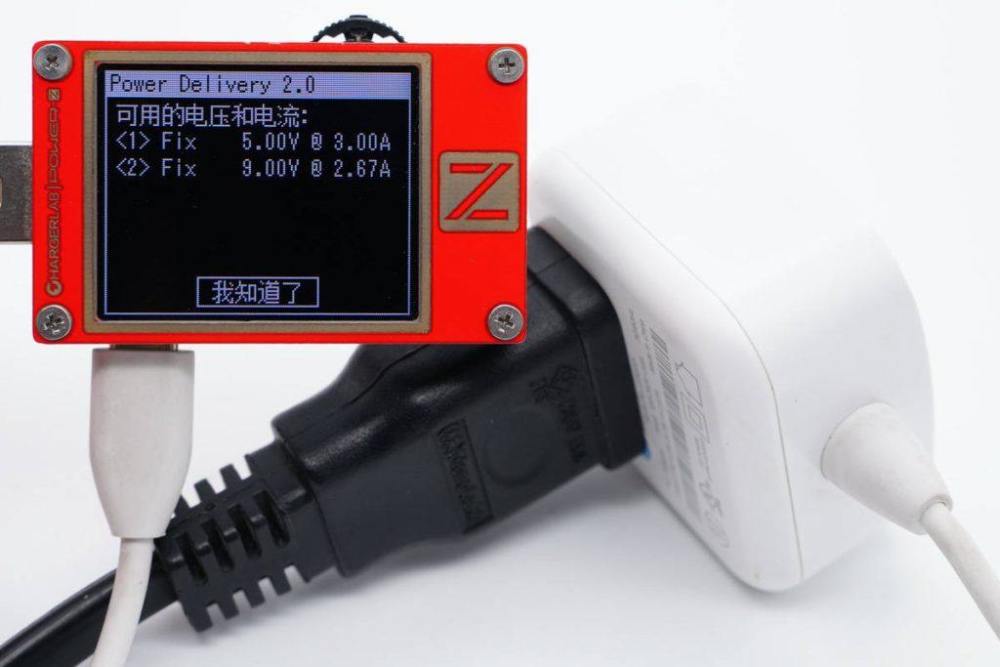 使用 ChargerLAB POWER-Z KT002,确定该充电器只支持PD2.0快速填充协议。