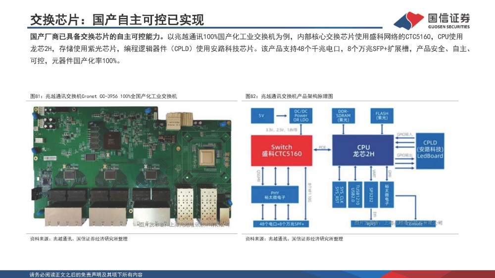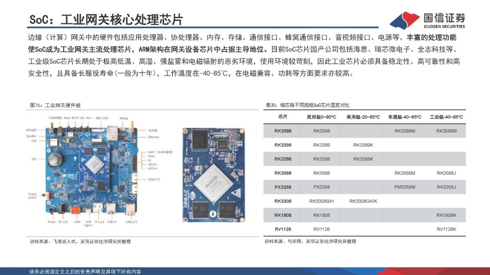 端口的硬件包括应用程序处理器、共处理器、内存、存储、通信接口、移动通信接口、音频和视频接口、电源等。广泛的加工功能使SOC成为工业开关的主流加工芯片,ARM架构主导了网络设备芯片。目前,SoC芯片国内公司包括Heath、Ray Core微电子、所有利益技术等。
