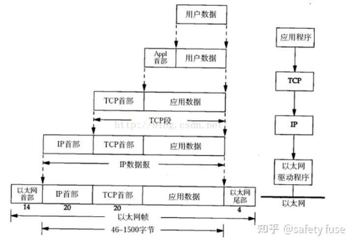 它们的关系是数据框架 {IP包 {TCP或UDP包 {Data}}