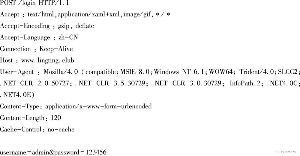 第十二行:sername=admin&password-123456此处表示POST请求的正文部分