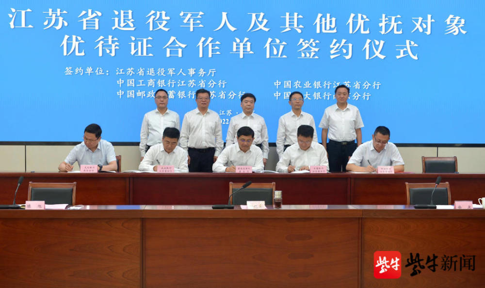 签约仪式上,江苏省 Veterans Affairs部、中国工商银行江苏省分行、中国农业银行江苏省分行、中国邮政储蓄银行江苏省分行和大中华银行南京分行签署了《关于给予江苏省 Veterans和其他福利受益人优惠待遇的合作协定》。中国-中国银行联盟江苏省分支机构、中国邮政集团江苏省分支机构、中国电信江苏省分支机构、中国凤凰新中国书店集团有限公司、南京金岭酒店管理有限公司和孙宁宜库集团有限公司在江苏省签署了合作协议。根据协议内容,合作单位将向江苏省的牌照人士提供个性化治疗服务。