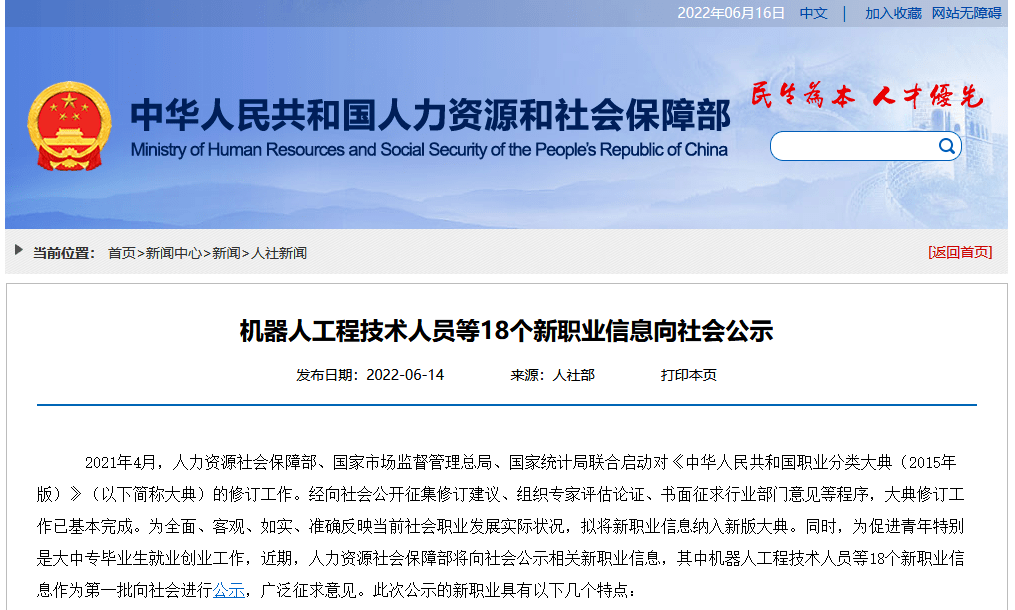 6月 14日, 人力资源 和 社会 安全 部 宣布 了 18 个 新 的 职业, 包括 “ 家庭 教育 教员 ” 和 “ 研究 旅行 教员 ” 。