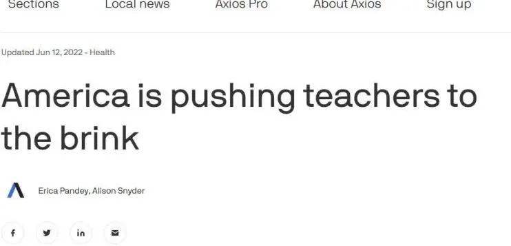 文章称,长期以来,在美国,教师一直是低收入的职业。过去两年,公众对教师的需求更高,教师的工资仍处于停滞状态。与此同时,他们也面临多种风险,如校园枪击、新作物爆发和政治干预。教师已成为美国最能源密集的职业之一。