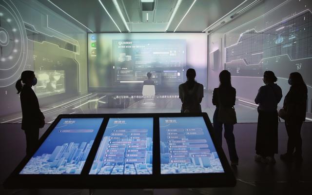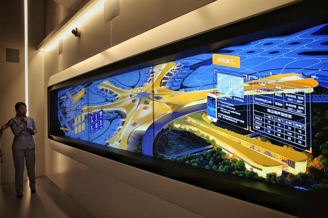 6月15日,广东信息大厦的员工介绍了泰兴国际机场建设中使用的智能管理系统。