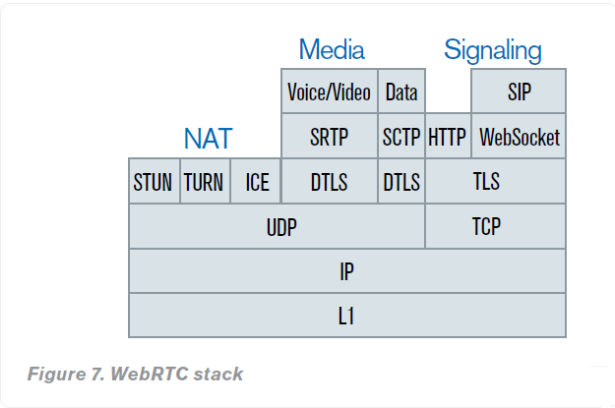 WebRTC技术由互联网工程工作队(IETF)根据标准互操作通信模型和协议堆(见图7)详细定义如下: