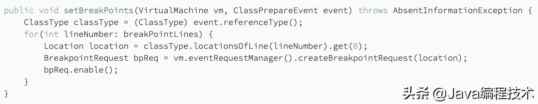 3.设置一个事件,如ClassPrepareEvent, BreakpointRequest等: