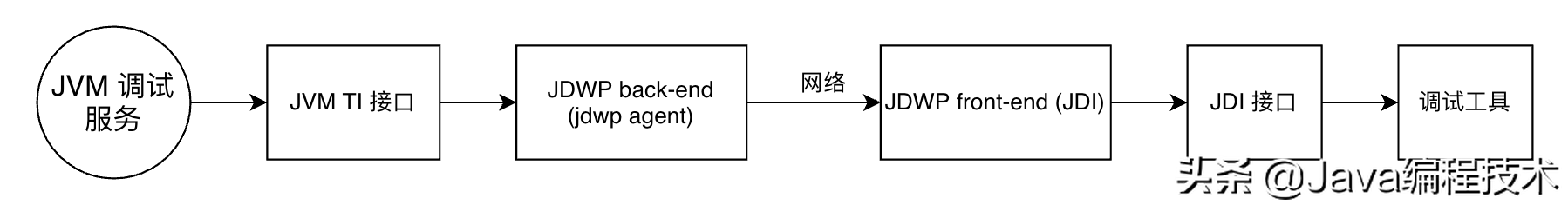 JDWP实现了调试器和调试器之间的分离,因此调试器可以在多个平台运行和调试。