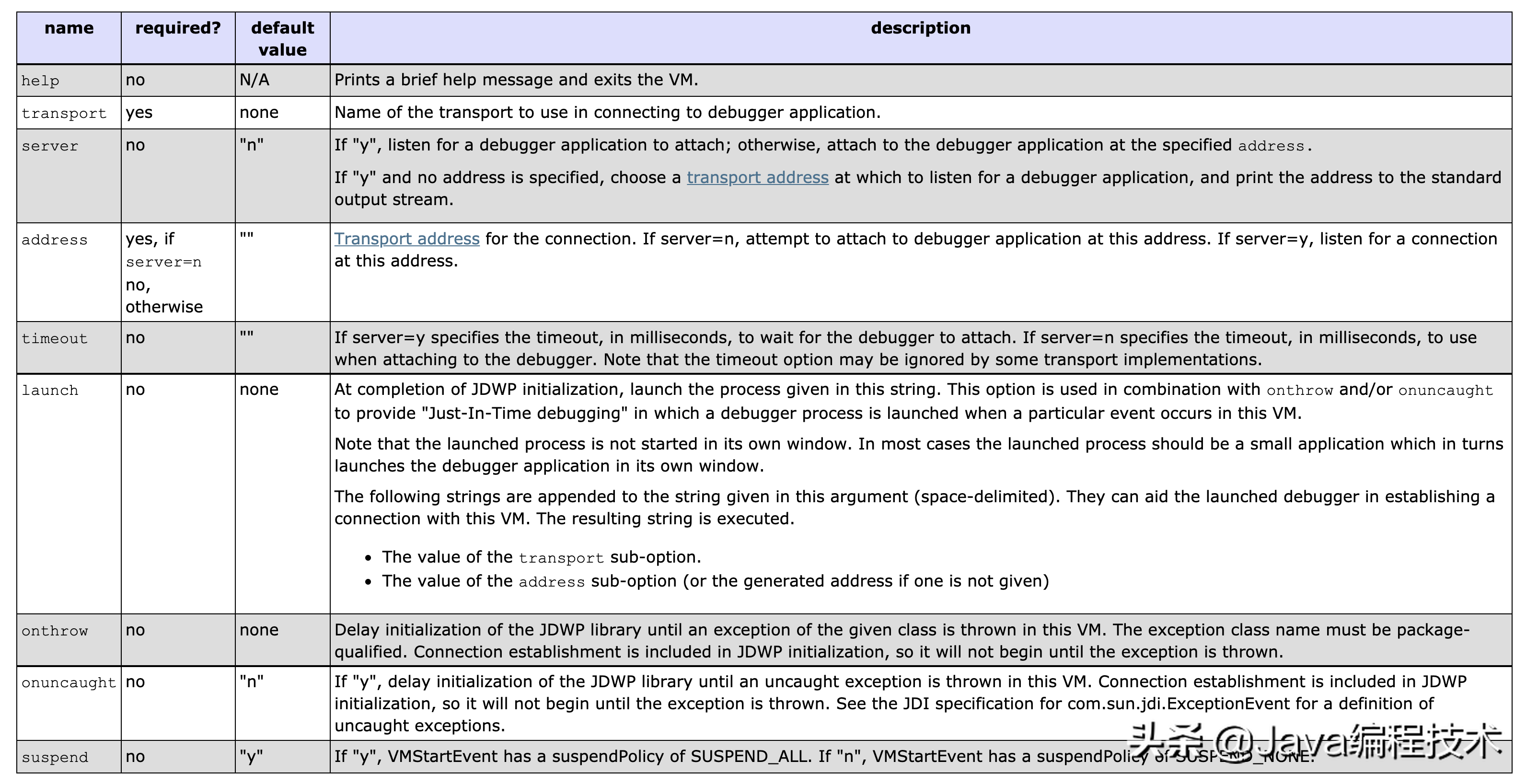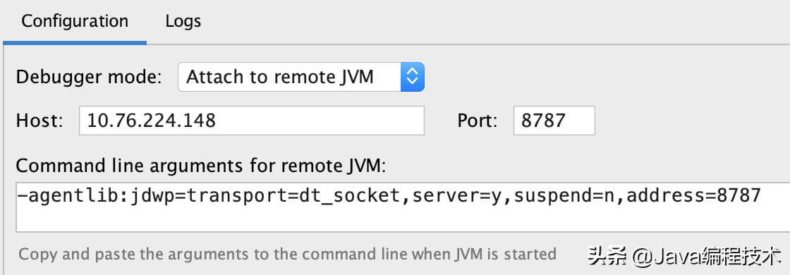 上述两种方法需要进一步配置远程调试参数,即运行jdwp:和jdwp=之后的选项。