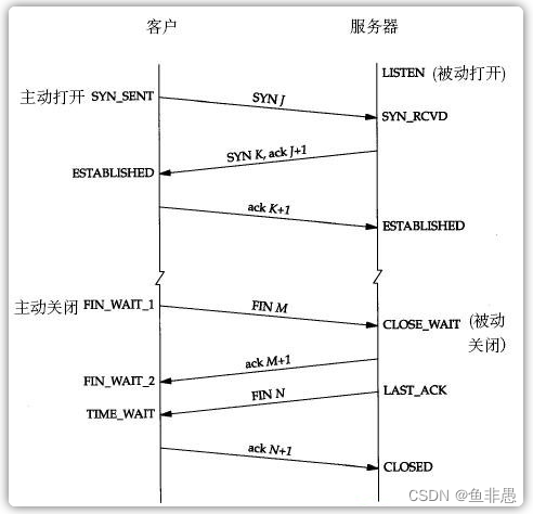 输入 FIN_WATI2状态;客户端仍可通过读取通道读取服务器的数据,服务器仍可通过读取通道写入数据。