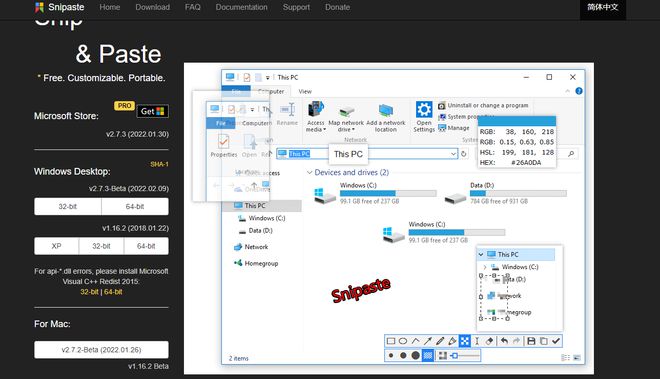 这是一个强大的专业剪刀工具软件,用户可以从他们的网站下载和安装。Snipaste可以理解为结合Snip和Paste两个功能的工具。操作十分的简单,用户可以直接点击F1(有些计算机需要按下Fn+F1)。还有一种更实用的功能,就是按F3(有些电脑需要按Fn+F3)完成剪切后可以非常方便地挂在电脑桌面上!