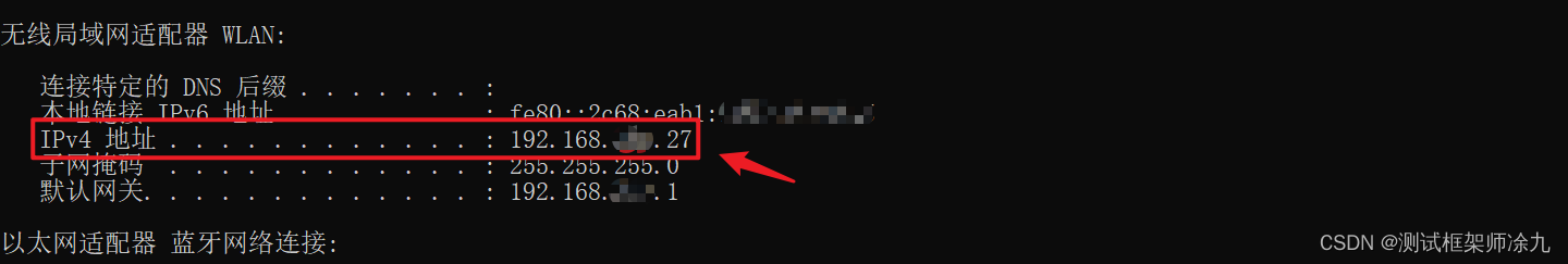 首先,您需要获取安装的菲德勒计算机的IPv4地址,并输入cmd中的IPconfig,如图所示: