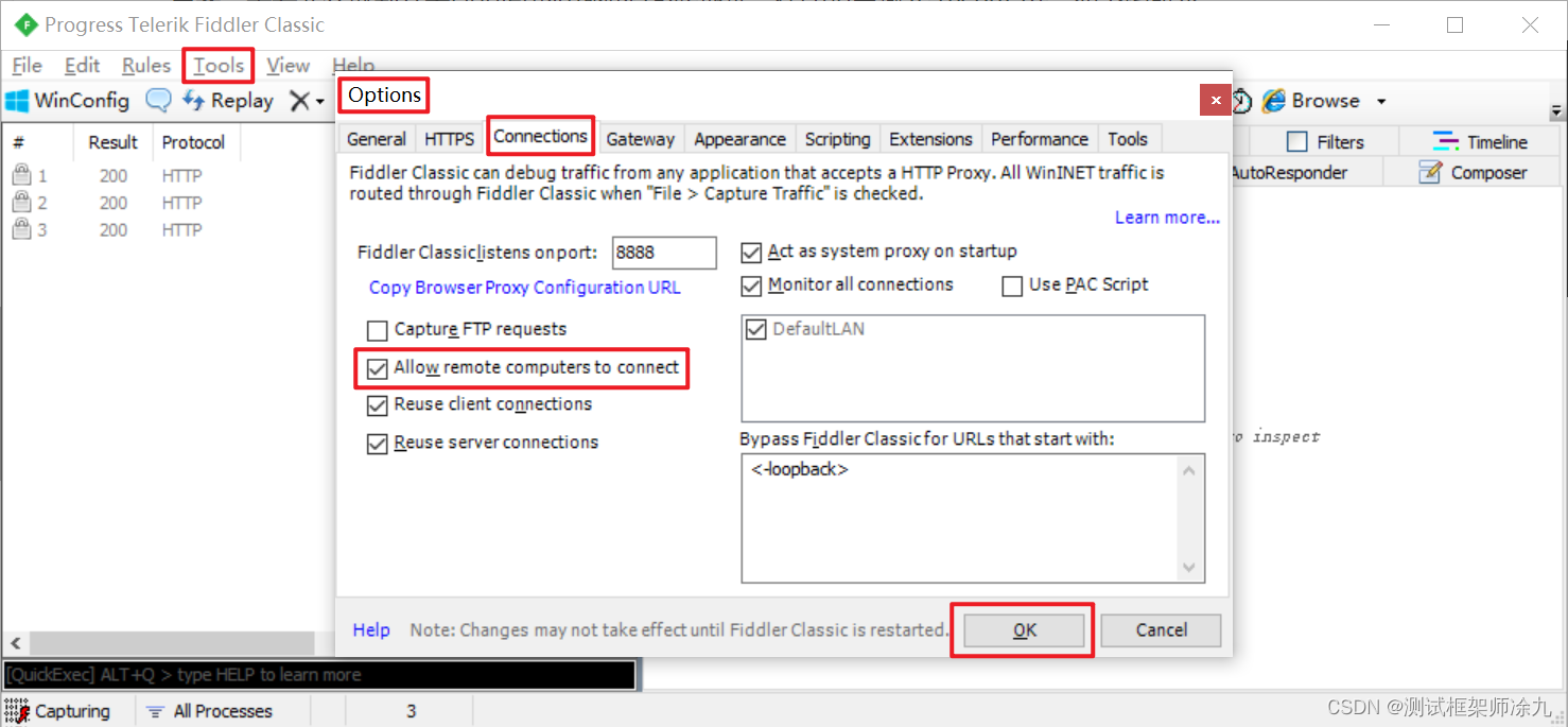 如何让HTTP请求通过88?当Fiddler启动时,IE浏览器的代理是自动设置的:88是代理地址,Chrome和Firefox在浏览器中需要手动修改,移动端需要在移动电话中设置.