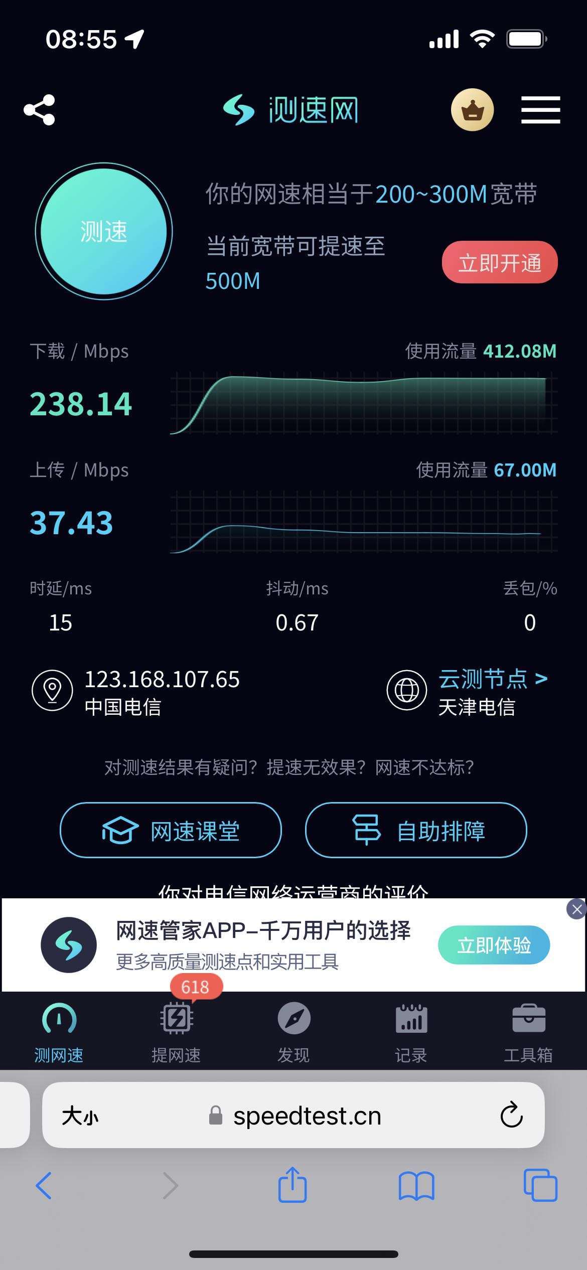 通过测速网站测试,丢包率几乎为零,所以你不必担心在使用过程中出现的网络问题,整个家庭的情报也可以24小时上网。其他朋友担心24小时的会议会影响到他们的经验。然后你可以选择在某个时候重新启动路由器,通常是早上起床的。