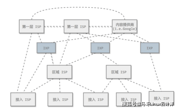 区域 ISP 和本地 ISP 互联网交换点(IXP)允许两个 ISP 直接连接,而不需通过第三个 ISP 。