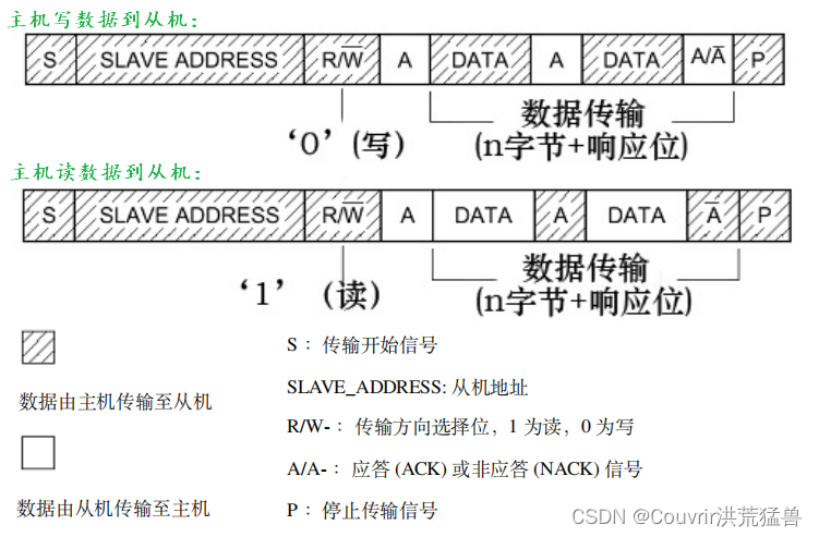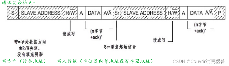 在地址位置之后,是传输方向的选择位置,即 0 然后,它表示后面的数据传输方向是从主机发送到主机,即主机写数据到主机。 相反, 主机从机器里读取数据.