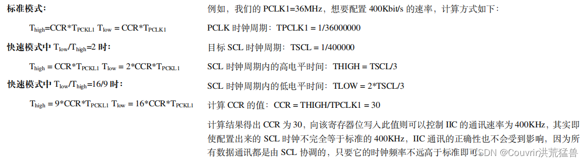 配置 I2C 的 CCR 注册表可以修改与通信速度有关的参数: