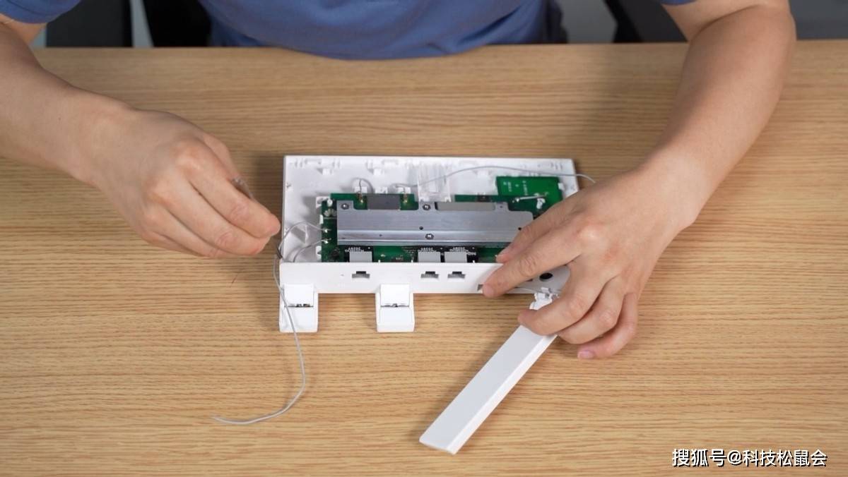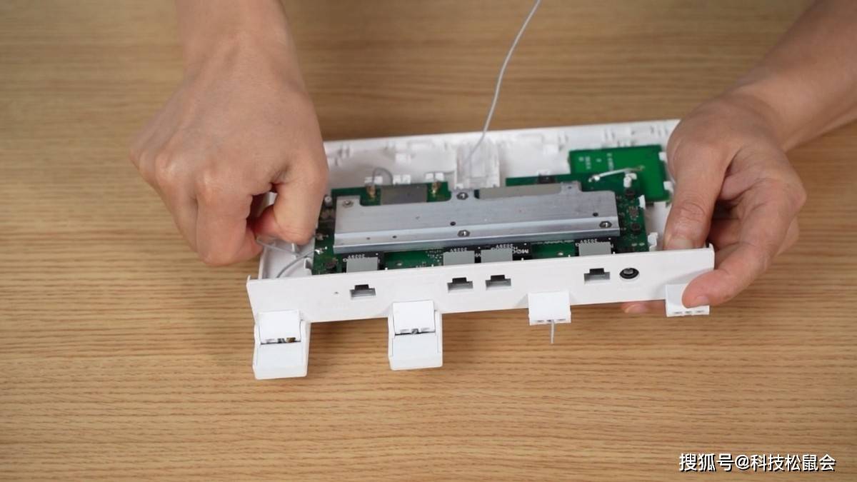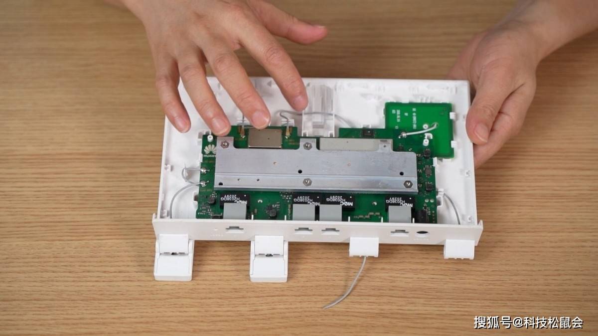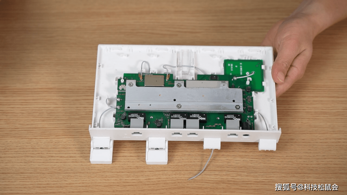 现在后盖打开了,我们可以看到路由器的主板,有一个大的辐射器,今天我们打算更换天线,还有少数其他可以介绍。