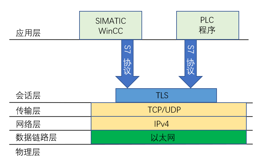 TLS(传输层安全协议,传输层安全是SSL协议的继承者。在网络ISO模型中,它位于对话层。TLS最初用于加密HTTP协议。TLS现在也用于HMI安全通信应用层协议。