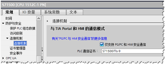 TIA Portal V17 S7-1200/1500新软件版本支持HMI(HMI为人机接口,英文缩写为SIMATIC WinCC也属于HMI安全通信。这种安全通讯具有以下特点: