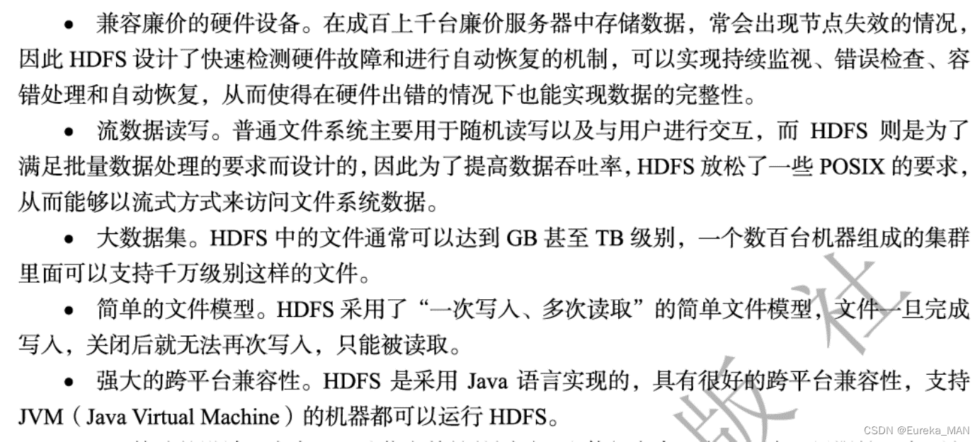 分布式文件系统 (Hadoop Distributed File System, HDFS) 是 Hadoop 这个项目的两个核心组成部分之一是针对谷歌文件系统 (Google File System, GFS) 的开源实现, 研究如何存储在计算机集群上 。 HDFS 它具有处理超大数据、流体处理的优点,并且可以在廉价的商业服务器上运行。 HDFS 设计的开始是运行在一个大型、廉价的服务器集群上,因此设计认为硬件故障是正常的,这可以确保整个文件系统可用性和可靠性在某些硬件故障的情况下仍然能够得到保证。