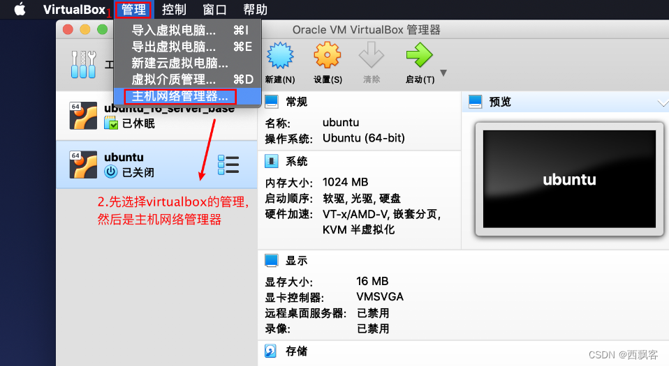 结论:两个组合是NAT+Host-only,因为只有一个主机,它需要支持多个虚拟机,使用NAT模式访问外部网络,并且主机可以在虚拟机、虚拟机和虚拟机上实现,使用Host-only。