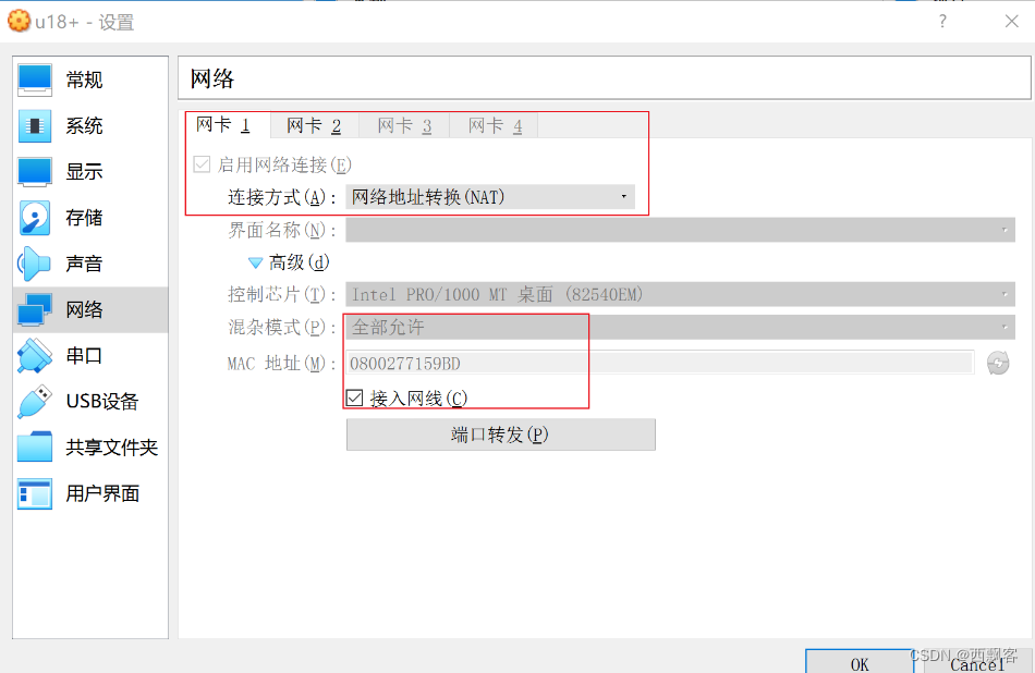 第一个网络卡默认是:NAT模式,实际上这个不需要配置,它是默认的。