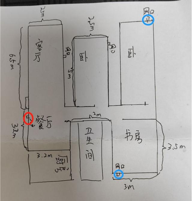 因为是老宅改造,在此过程中,人们发现,几年前建筑小组使用的板材质量差。图书馆的86端口模块插座已经损坏并被删除。所以图书馆采用了无线传输,冰箱和卫生间与主路由器分开.所以信号强度很弱,最后我买一个网络插头的替代品,让图书馆的电线也逆转,到那时,我会给你测试整个房间的信号强度。