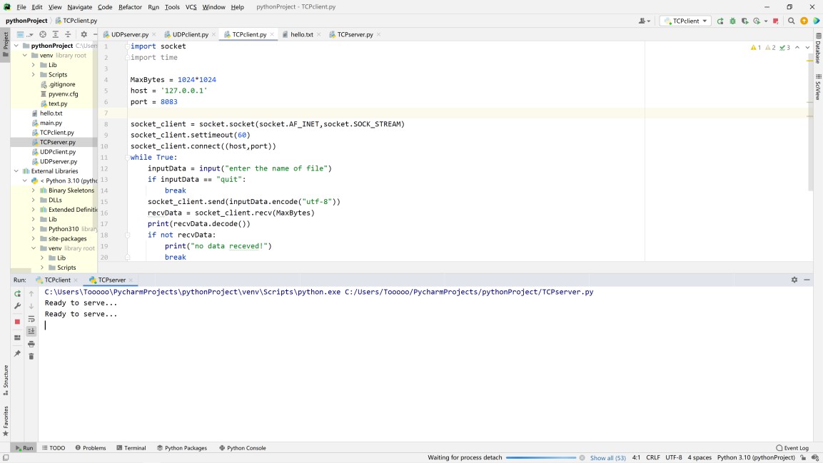 ■使用Python编译简单的UDP服务器和客户端,实现它们之间的通信