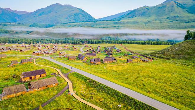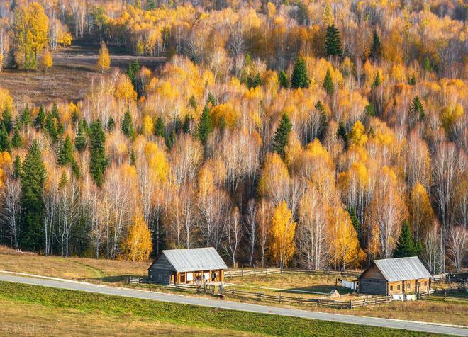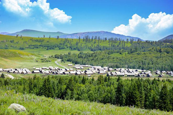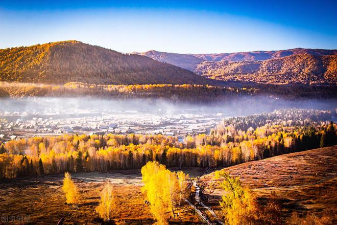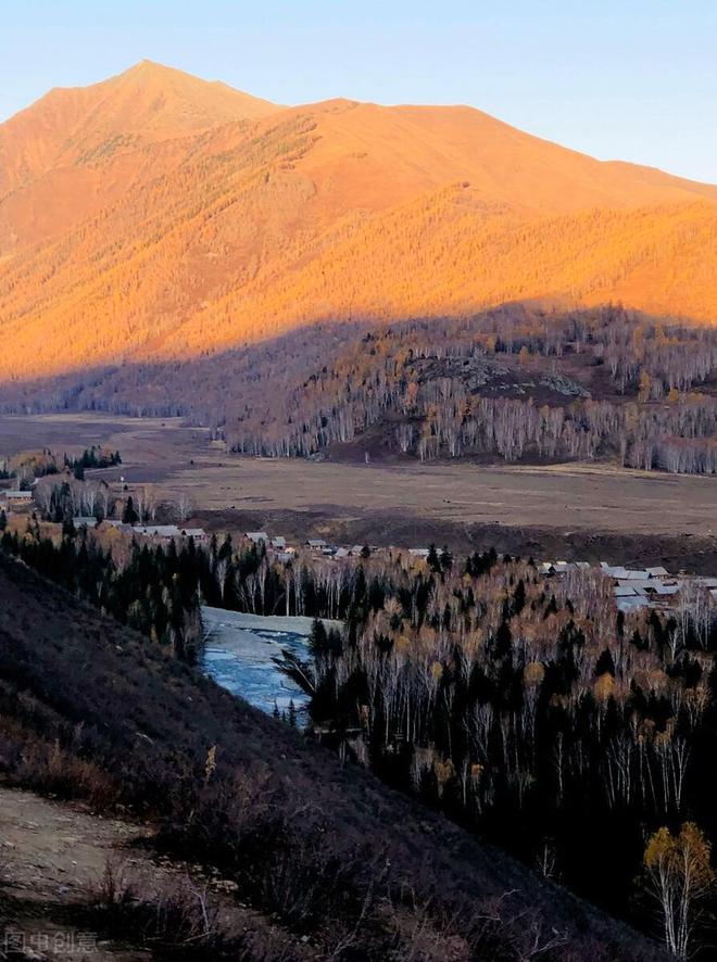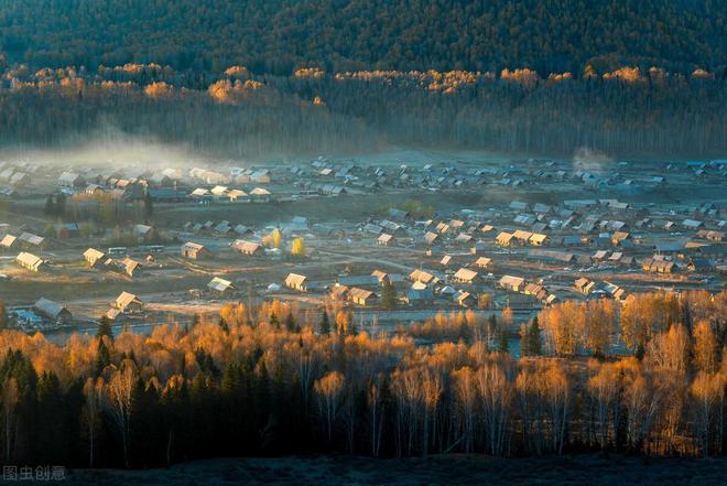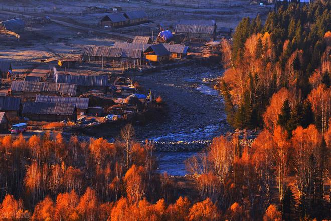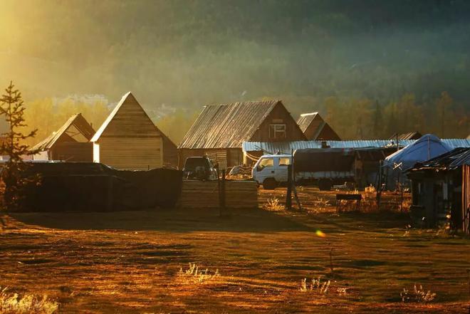 太阳还没有落下,天色还很亮。我们放下行囊,这条路很快到达了村北的一个小山。山上满是灌木,它们中的许多是黄色叶子的白色伯奇树.又加到满是柔软的荒凉的山上,在这样的环境中,不是因为你没有创造一种舒适的感觉。站在山丘上,这些村庄可以从北向南纵观,这是一个位于盆地的村庄。四周有山丘,满是森林,似乎只有及时的路径才能与外界联系起来。这个村庄有两条道路,把整个村庄分成三个带。很规整顺畅。在村子中间有几株黄色的树叶,高耸突兀,就像鹤鸡一样,西边有一条北南流的河流,叫禾木河。