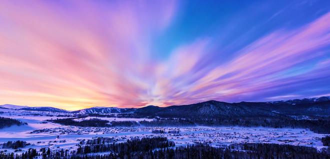 早些时候,在盆地溪谷的草原里,无声无声,无车无马,无声无声。没有机器的轰鸣,没有牛吼马嘶,没有鸟鸣虫唱,甚至绵羊也吃不着草, 也听见不响的响声.而禾木,这个小村子位于山深处,却是万籁有声的。脚下河水汩汩滔滔,身边草坡牛吼马嘶,山上丛林松涛阵阵,头顶天空鹰鸣鸟鸣。然而,这是大自然的声音。就像一个难以穿透的障碍,它就像一个巨大的声音的黑洞,想想那些不自然的声音,他们都拒绝或窒息进入,让人感觉到的,是一种别样的岑寂。