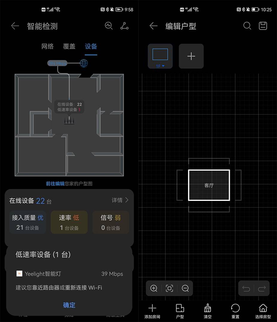 互联网的速度是多少?我认为这取决于测试室的大小,我把路由器放在客厅的中间,面积约15平方米,厨房卫兵增加了20平方米,两间房间共占50平方米,测试环境大约是85平方米。我的房子有300米宽带连接.“Smart Life”应用程序提供测量网络速度。