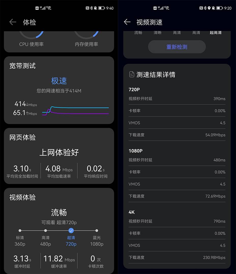 下载速度是414Mbps,上传速度是65.1Mbps,300M宽带可以运行在如此高速,它相当好。