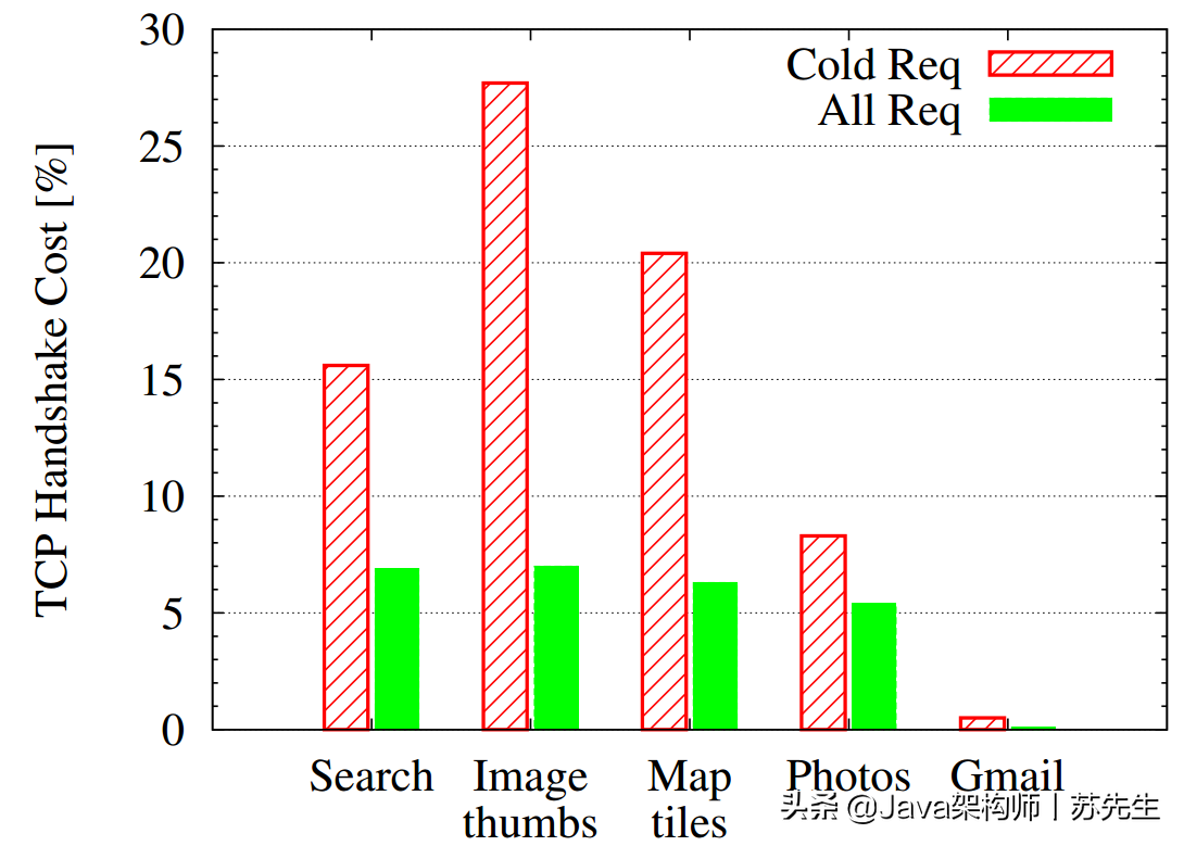 TCP是一个完全双重协议,可以双向传输。所以需要三个手来建立联系。HTTP请求中三个握手的平均时间超过10%,在网络状况不佳、频率高、或遇到SYN洪水攻击等情况下,如果三个手的参数不正确调整,它将对业绩产生巨大的影响。