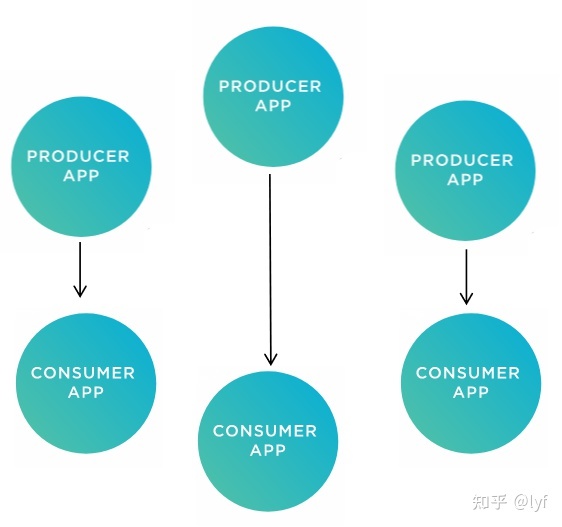 上面的图表显示了无中间体的网络架构(Brokerless),其优点是: