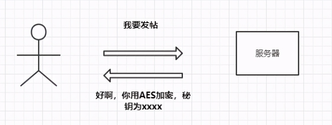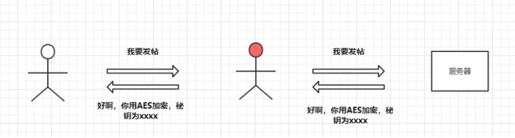 此时,有人可能想到,因为内容是明文,我已使用对称加密加密加密消息,使中间人不看到明文,所以做了以下修改:
