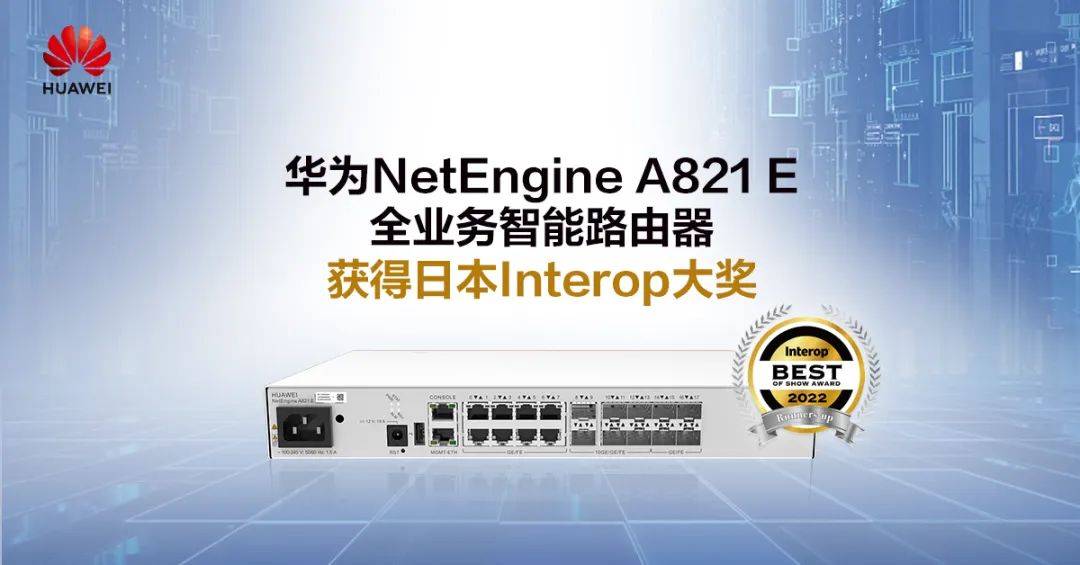 2022年6月15日,在2022年日本最大的资讯及通讯科技展,华为数据通信产品NetEngine A821E赢得了2022年最佳展示奖。Interop委员会的评价:该产品是业界的超小型、大容量、全功能智能路由器,适用于城市网端接口,还具有SRv6、10GE FlexE物理切削能力,实现企业快速上云,并提供优质专线保证.
