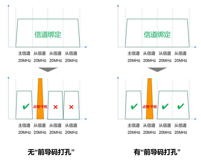 在某些情况下,现有用户占有空的连续通道(例如20 MHz或40 MHz)的带宽的一部分,从而阻止AP访问点使用连续通道,导致带宽的下降。
