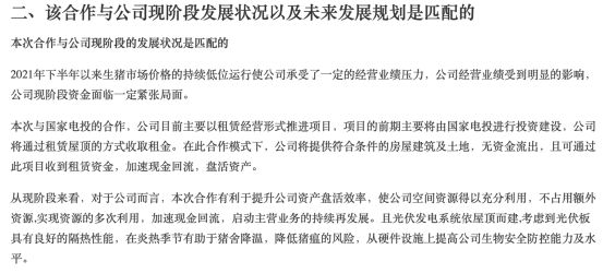 也就是说,本次合作前期,正邦科技无须投钱,你只需要租自己的空屋和土地.公司表示,经过多年的投资布局,在20多个省,如江西、四川省、江苏、广东,有大量活猪养殖和饲料加工基地,屋顶面积超过20,00平方米,土地资源超过300万公顷.经过双方测算,公司目前拥有的资源可以满足协议的目标。