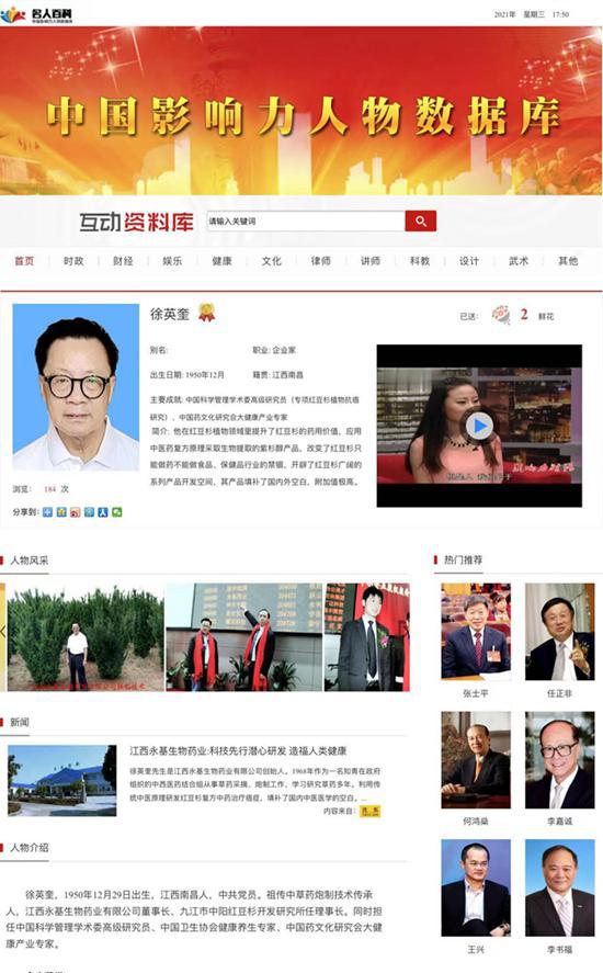 徐英奎,1950年12月29日出生,江西南昌人,中共党员。传统的中国药草枪制造技术是人们继承的,江西永木生药有限公司主席,江西中阳红豆杉研究所主任。同时,他也是中国科学管理学会高级研究员、中国卫生协会健康及营养专家、中国医药文化研究委员会健康产业专家。
