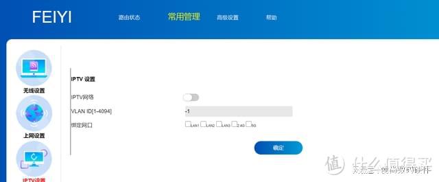 针对AX300飞行的路由器常用的某些功能,进行了详细的分析,与 WIFI 设置一样, 您可以根据您在共同设置中所希望的设置设置 WIFI 名称 、 频率带 、 墙壁 、 频道等.这里需要特别提到的一件事是IPTV设置这个功能通常只适用于猫,过去人们常常看到买进的大笔交易修改协议曲线以拯救国家,这个飞行的AX300路由器直接提供了这个功能,有此需求的亲友可以直接使用它。